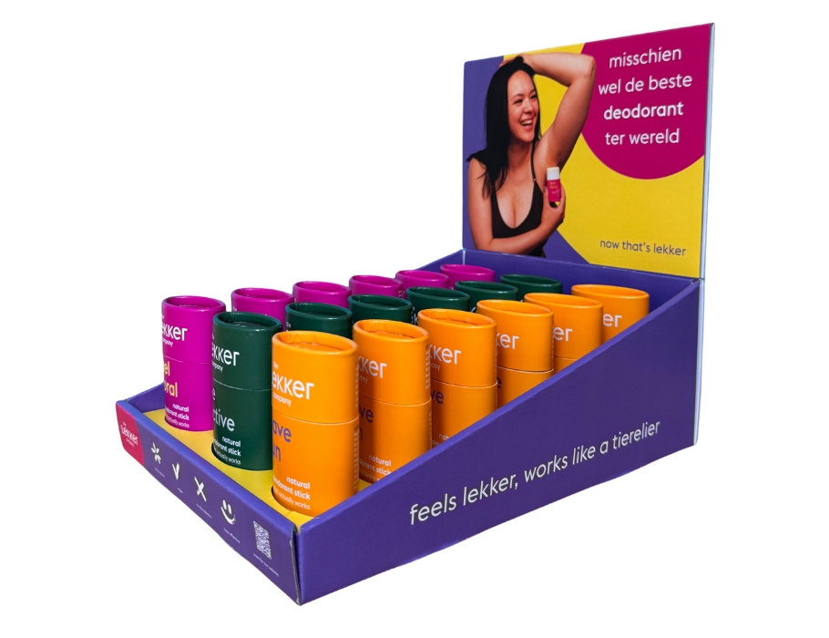 The Lekker Company (voorheen lekkerineenpotje) begon in 2014 als een Pinterest-hobby met 100 glazen potjes aan Utrechtse keukentafel. Destijds maakte eigenaresse Dewi van de Waeter zelf deodorant en andere cosmetica. Ze had een missie: iedereen zou moeten weten wat ze op hun lichaam smeren. Ingrediƫnten in Jip-en Janneketaal, in plaats van ingewikkelde Inci taal. Inmiddels worden de deo's verkocht in meer dan 1500 Europese winkels, verpakt in een milieuvriendelijke, plastic-vrije verpakking en geheel natuurlijk en milieuvriendelijk! Je hebt namelijk niets onnatuurlijks nodig om lekker te ruiken en lekker in je vel te zitten.